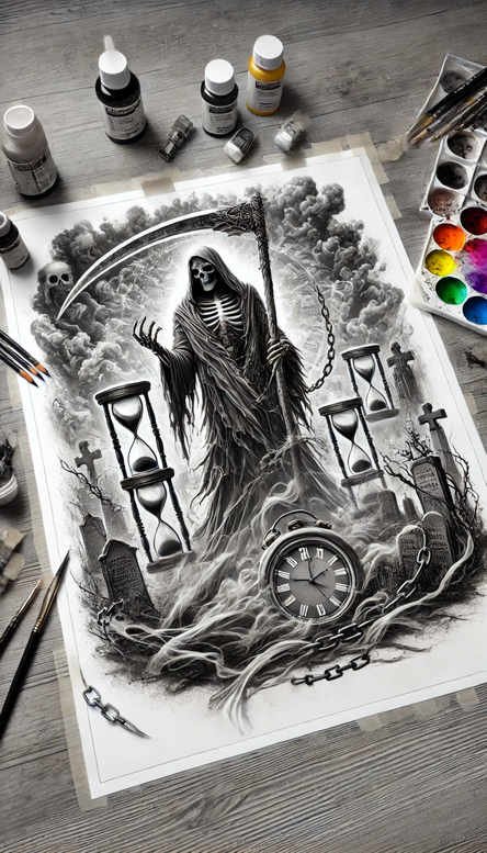 grim-reaper tattoo design ideas Surrealism abstract mortality for lower back