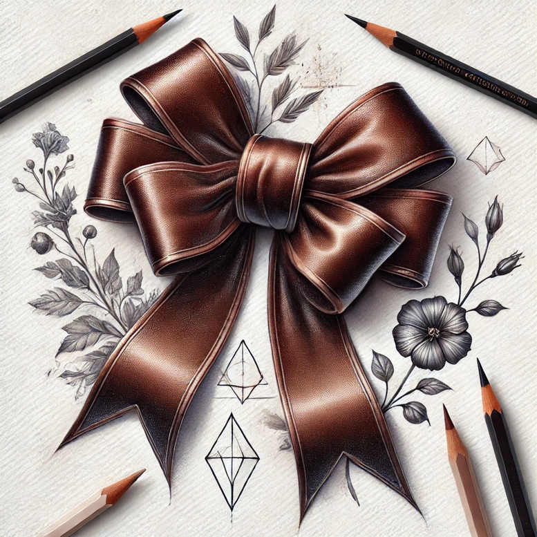 AI-generated tattoo project concept featuring a brown satin bow as the focal point, framed by graphite botanical drawings and precise geometric diamonds. The composition fuses soft realism with restrained linework, giving the ribbon a tactile, almost silk-like appearance that seems to float above an inked backdrop. Leaves and a single flower are rendered in black and grey, with delicate shading that creates depth and a subtle emphasis on negative space, while the diamonds introduce a modern, geometric counterpoint to the organic forms. This interplay between curvilinear ribbon and crisp geometry invites interpretation: the bow can symbolize memory, gift, or resilience; the floral elements suggest growth and renewal; and the diamonds convey clarity and discipline in design. The overall approach leans toward fine-line tattoo aesthetics, adaptable to small or larger placements such as the forearm, shoulder, or back, and suitable for a refined, timeless tattoo design. As an AI-generated tattoo project concept, it demonstrates how narrative imagery can be built from traditional plant motifs combined with graphic patterning to yield a cohesive body art story. The color plan uses black and grey shading for the majority of the composition, with warm brown accents on the ribbon to anchor focal interest, producing a design that is both dramatic and versatile. Whether pursued as a standalone piece or integrated into a larger sleeve, this concept offers meaningful tattoos with potential for customization in texture, scale, and placement, aligning with modern preferences for meaningful tattoos and custom tattoo design.