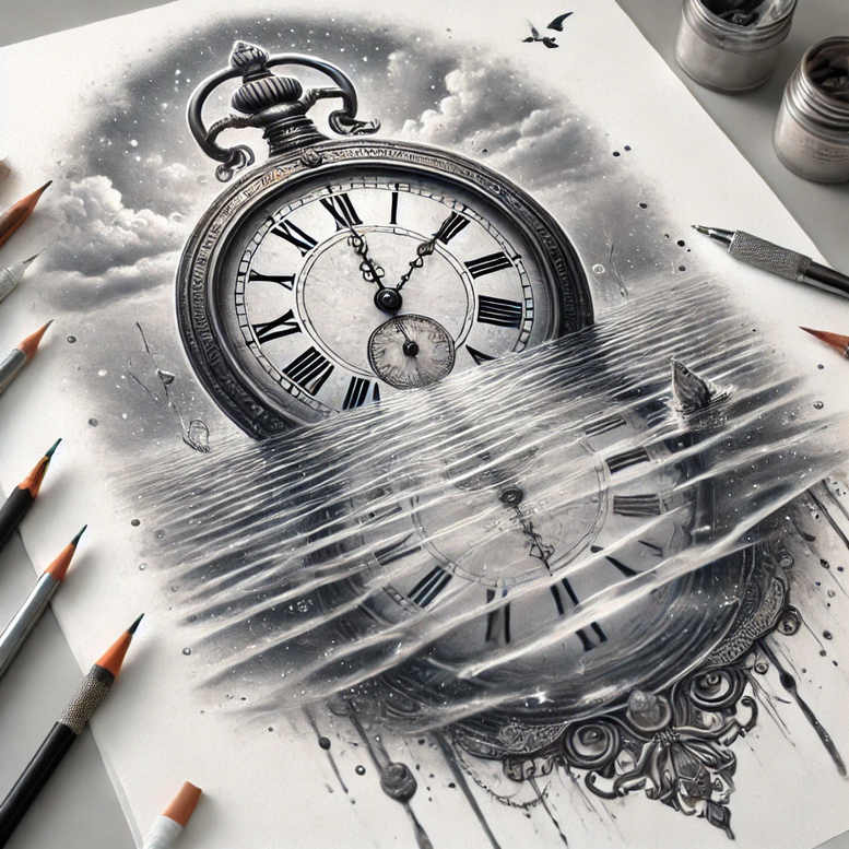 This black-and-grey pocket watch tattoo concept is rendered as a meticulous study of time, memory, and craft. The main motif—a classic pocket watch—anchors the composition with a bold dial featuring Roman numerals and a smaller subdial, all executed in precise line work and rich tonal shading that mimic metal and aged parchment. Surrounding the clock, a veil of floral filigree unfolds into swirling patterns, suggesting growth and continuity beyond the timepiece; the filigree is intentionally dense yet controlled, creating a visual pattern that reads well as both foreground and backdrop. A soft, cloud-like atmosphere in the background adds depth, while the lower edge dissolves into an ornate border of scrolls and vines, inviting the eye to travel along the artwork. The design plays with negative space to keep the piece legible at smaller sizes, yet it can expand into a larger sleeve or backpiece for a dramatic statement. The overall style leans toward realism and classic illustration, with black-and-grey shading, crisp edges, and a tactile sense of metal, glass, and intricacy. This tattoo design comfortably accommodates custom interpretations, such as Japanese-influenced accents, lotus or rose motifs, or additional geometric elements, without losing its timeless core. As an AI-generated tattoo project concept, it showcases contemporary digital-to-ink workflows and the creative potential of pattern-driven composition in meaningful tattoos and body art. Meaningful tattoos often hinge on a symbol with personal resonance; in this piece, time becomes a universal emblem of cherished moments, while the filigree hints at connections and memories woven through life. The combination of fine line precision, shading transitions, and ornamental motifs makes it suitable for small tattoos as well as larger projects, offering flexibility in placement and scaling.