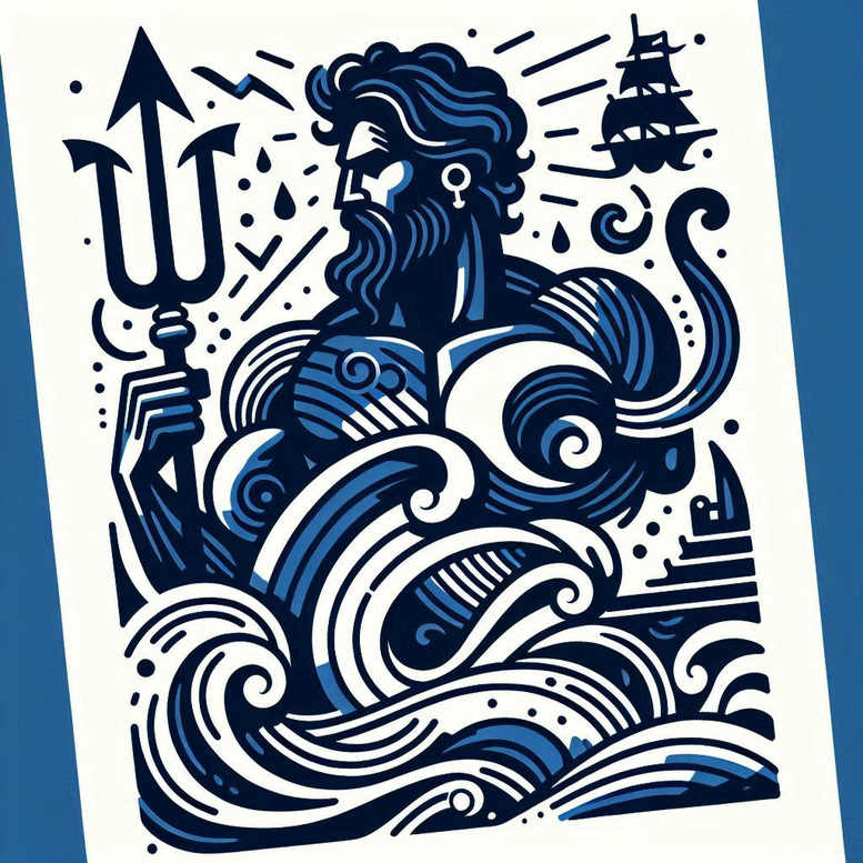 An AI-generated tattoo project depicting Poseidon, the sea god, gripping a trident as he rises from stylized breakers. The composition relies on bold navy linework and deliberate negative space to sculpt muscular form, cascading curls, and swelling waves, with a distant sailing ship etched in the background for context. The waves are rendered as graphic curls that echo traditional woodcut patterns, while the figure’s beard and hair blend into the tidal motion, creating a cohesive, sinuous flow across the design. Executed in black and grey ink on white skin, the design maintains strong contrast through solid fills and crisp edges, ensuring legibility at larger scales or when reduced for smaller placements. This piece speaks to meaning and power—sea mastery, protection for travelers, and a fearless bond with water’s mysteries—making it a compelling meaningful tattoo for lovers of mythic nautical imagery. From a technical standpoint, the project highlights controlled line weight, careful spacing, and durable contrast to preserve detail over time, with opportunities for gradient shading and subtle texture depending on the artist’s hand. As an AI-generated tattoo project, it showcases how classic mythic motifs can be reinterpreted with contemporary graphic linework while remaining faithful to tattoo design principles. The design is suitable for a cover-up scenario over dark underlying work, given its bold blocks and high-contrast silhouette, and it adapts well to different body placements, from forearm to chest, offering a timeless cornerstone for any sailor-inspired sleeve or back piece. The piece resonates with fans of Japanese style tattoo and traditional nautical themes, and it invites expansion into additional motifs such as lotus flower tattoo design or infinity tattoo elements if a client desires a broader narrative within the body art.
