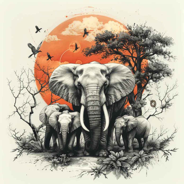 Samurai, geisha, armor, sword, cherry blossom, petal, bird, sun, branch; full color; tattoo project; not suitable for cover-up; pattern.